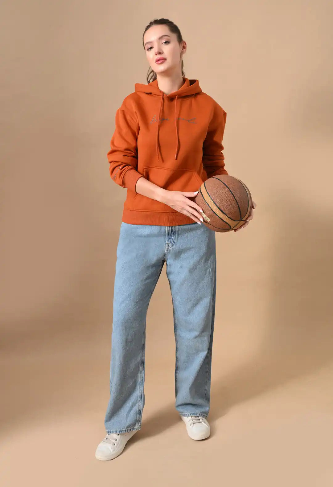 Women's Rust Orange HD print Hoodie